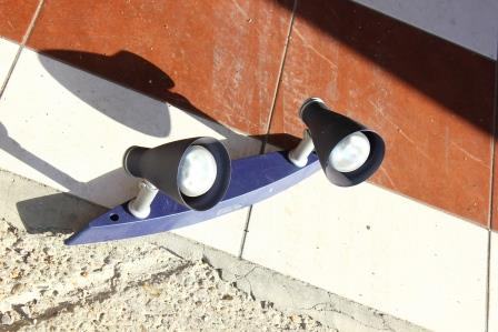 Moderan zidni reflektor s dva rasvjetna tijela. Boja - tamno plava. U dobrom stanju.
