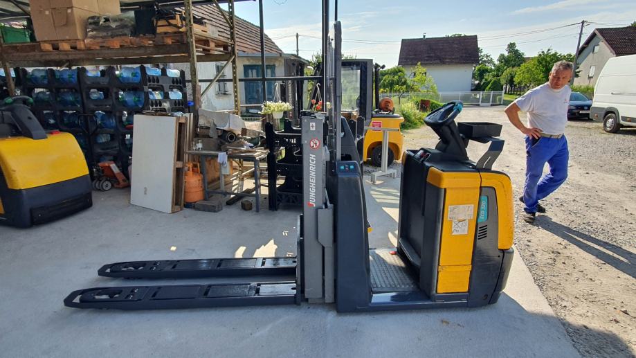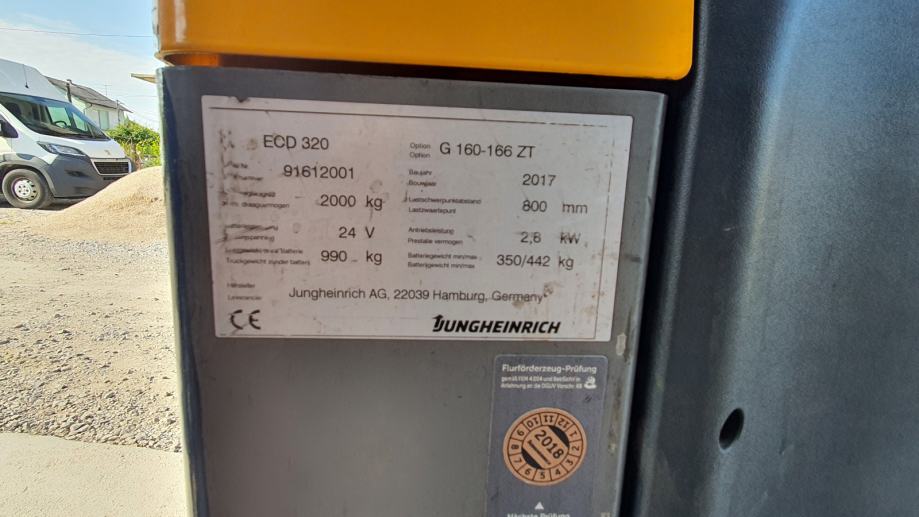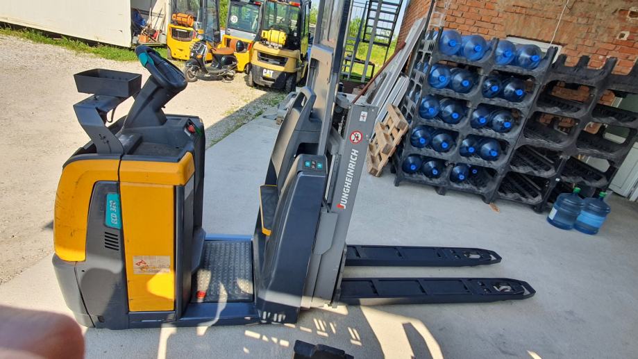 ECD 320 ,stroj koji može dizati dvije palete i na kojem se stoji dok se vozi (ima inicijalno dizanje)ukupne visine 1900 mm a visina dizanja 1730 mm sa punjačem 220 volti u odličnom stanju svaka etaža može dići 1 paletu a ukupna nosivost je 2 T.