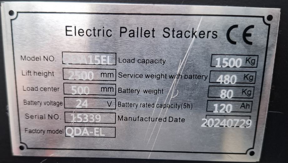Električni visokopodizni paletni viličar QDAE1525 - 1500 kg / 2,5m -