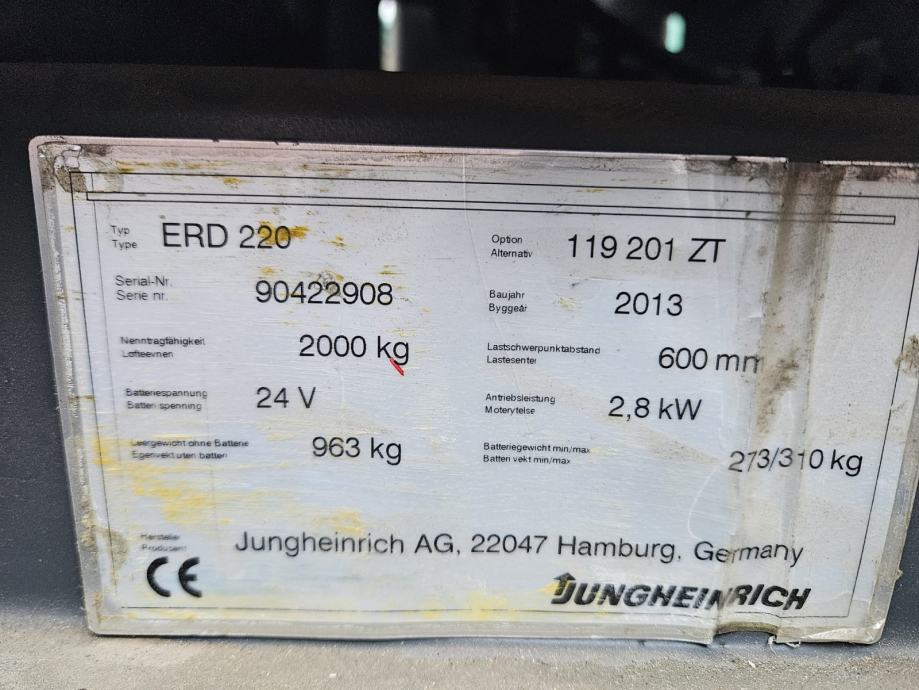 Jungheinrich ERD 220 119-201ZT električni viličar servisno pregledan od strane ovlaštenog servisera.