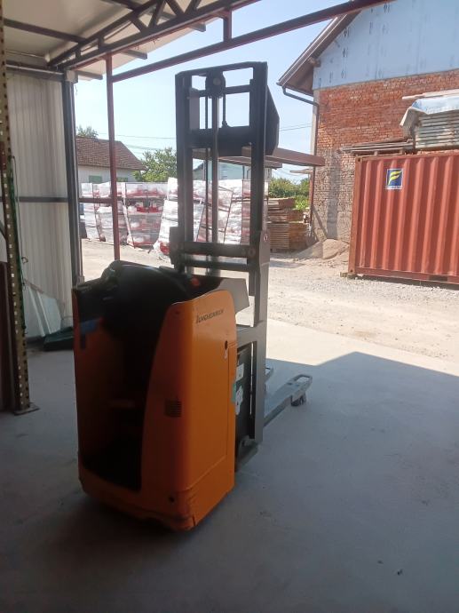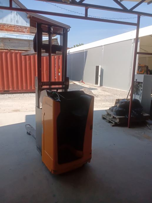 Stroj je u svakodnevnom radu, ispravan ,odličan za manja skladišta zbog dimenzija ,može istovarivati zbog visine podizanja kamione,kombije ili slagati palete jednu na drugu,ili obavljati manipulaciju teretom i u prostoru minimalnih ili ograničenih dimenzija.