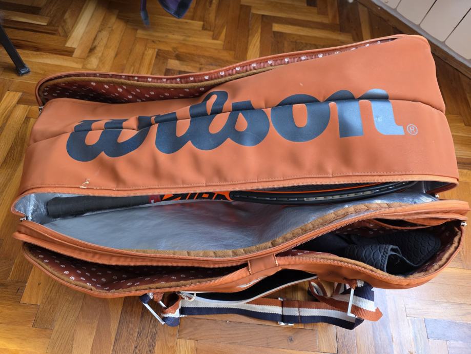 torba za tenis, za 3 reketa, imam je 4 godine, godina pauze zbog ozljede, maje oštećenje se vidi na slici, dobro očuvana