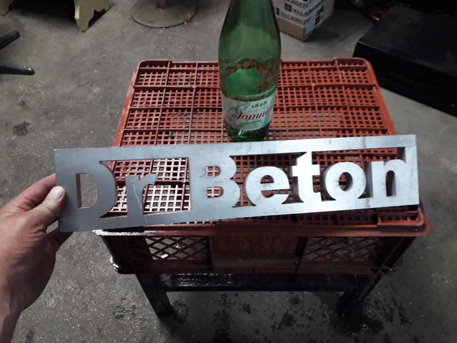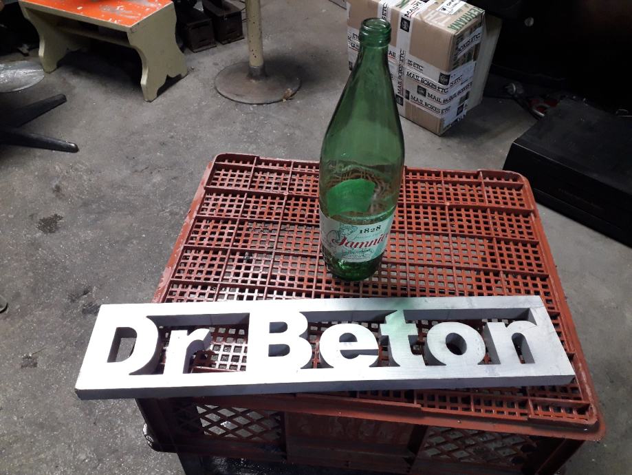 Dr. BETON. reklama izrađena od aluminija. Dužina 50 visina 10., debljina 2 cm