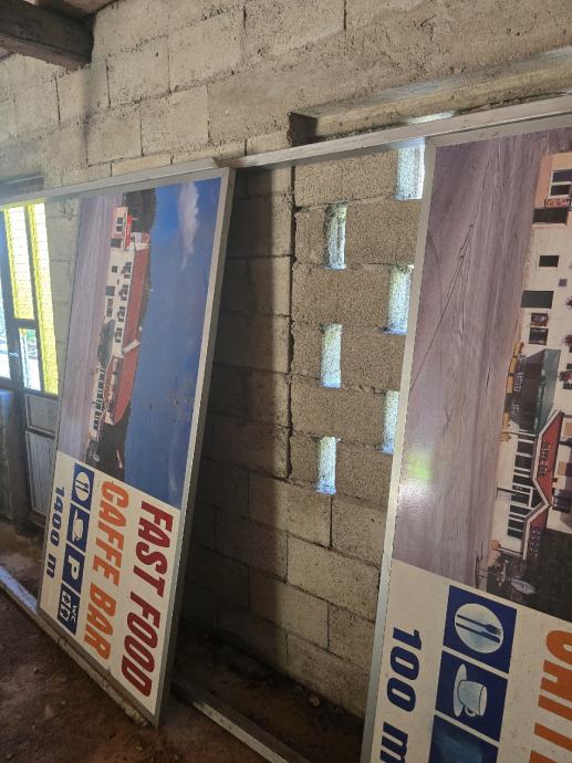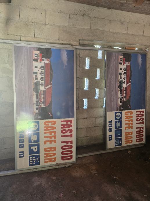 Prodaju se 3 reklamna panoa 2 idu u rupe 1 na zid visina 2 m d 140 š 100(samo komplet)može uz cestu na zid(restorani trgovine razno...