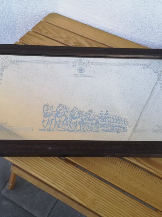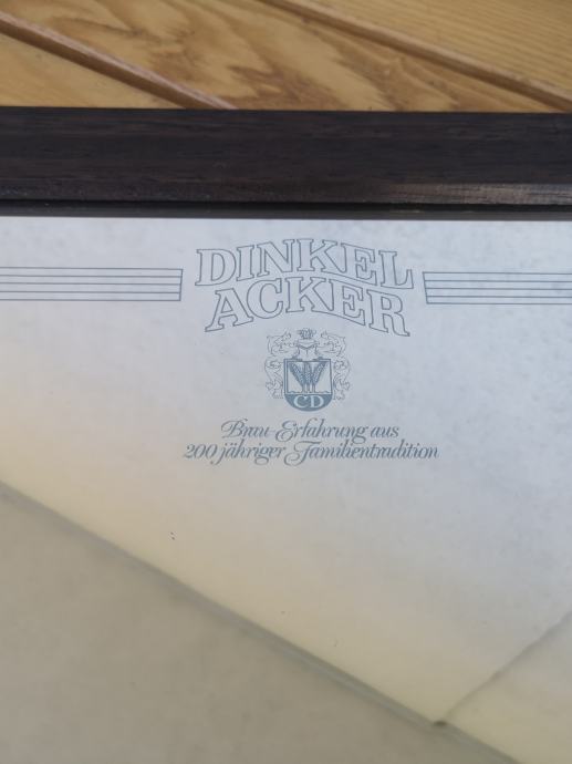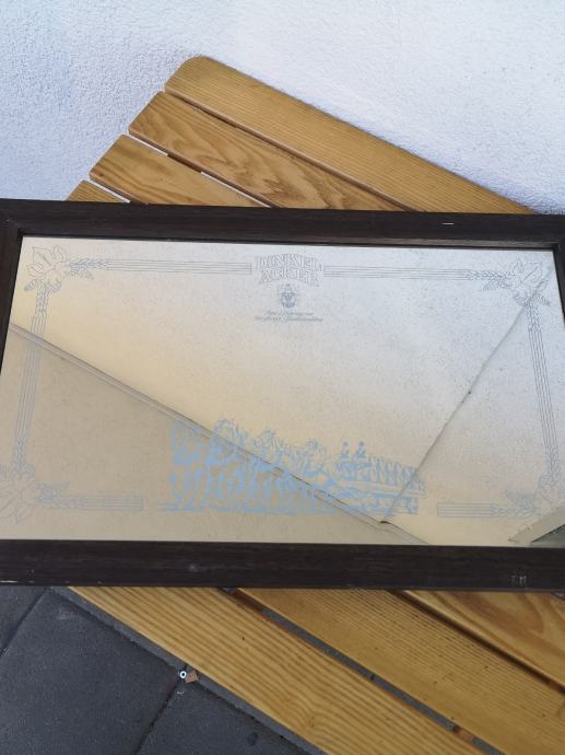 Veliko reklamno ogledalo Dinkel Acker u širokom drvenom okviru. Dimenzije 66 x 40 cm. Širina okvira 4 cm. Ne šaljem pouzećem