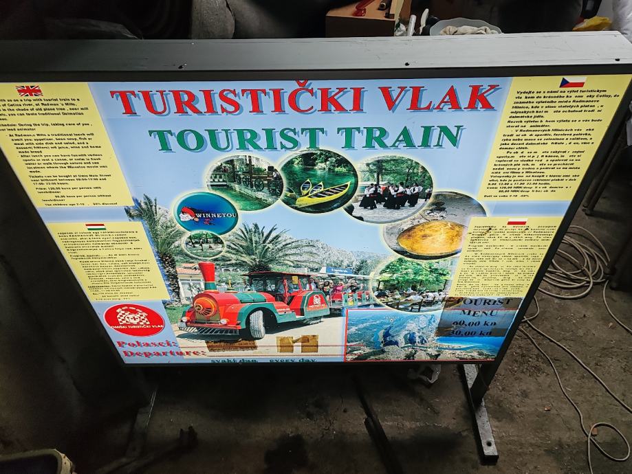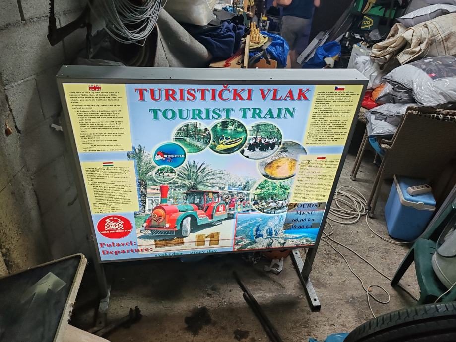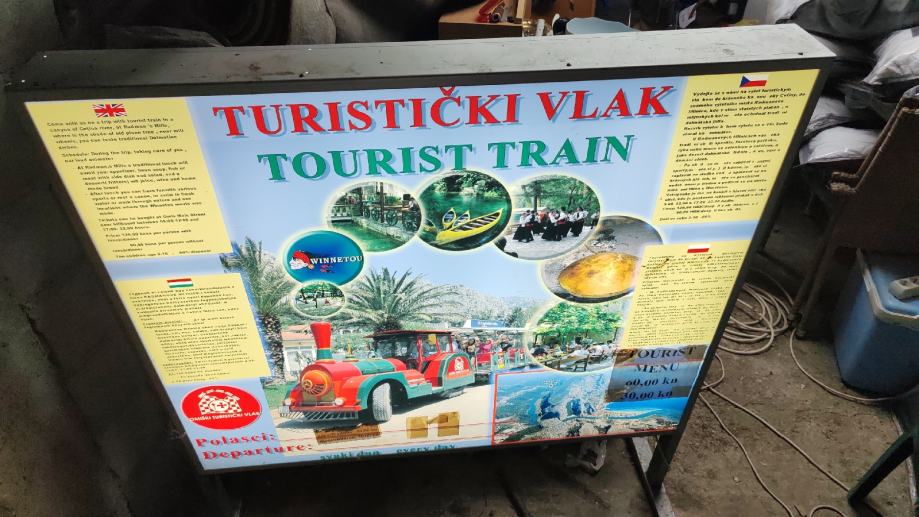 Pozdrav ,prodajem samostojeću svjetleću reklamnu ploču. Sve spremno, kabel, žarulje itd ..sve radi perfektno ,potrebno samo stavit svoj plakat. Korištena dvi sezone Svjetleći dio table je 120cm širina x 90cm visina , a s nogicama je visoka 130 cm (90+40). Za gotovinu nije fiksno.