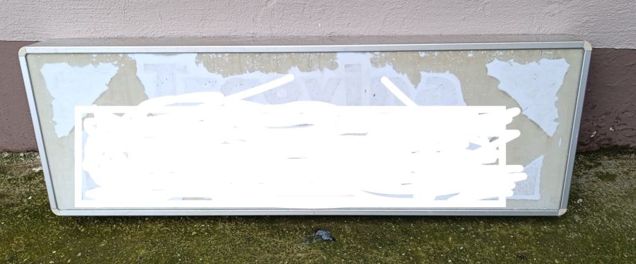 Prodajem svijetleću reklamu,jednostranu za na zid,vanjska je,stajala iznad ulaza u trgovinu,dimenzije 150x50cm,ima 3 neonke ,lice je od mutnog pleksiglasa,treba prelijepiti...