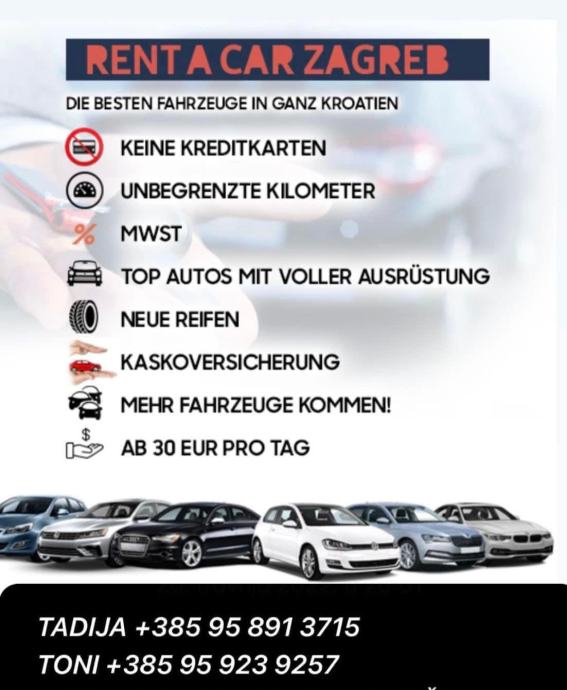 ⭕️Najam Automobila -ZAGREB,na duže ili kraće vrijeme , minimum 3-4 dana