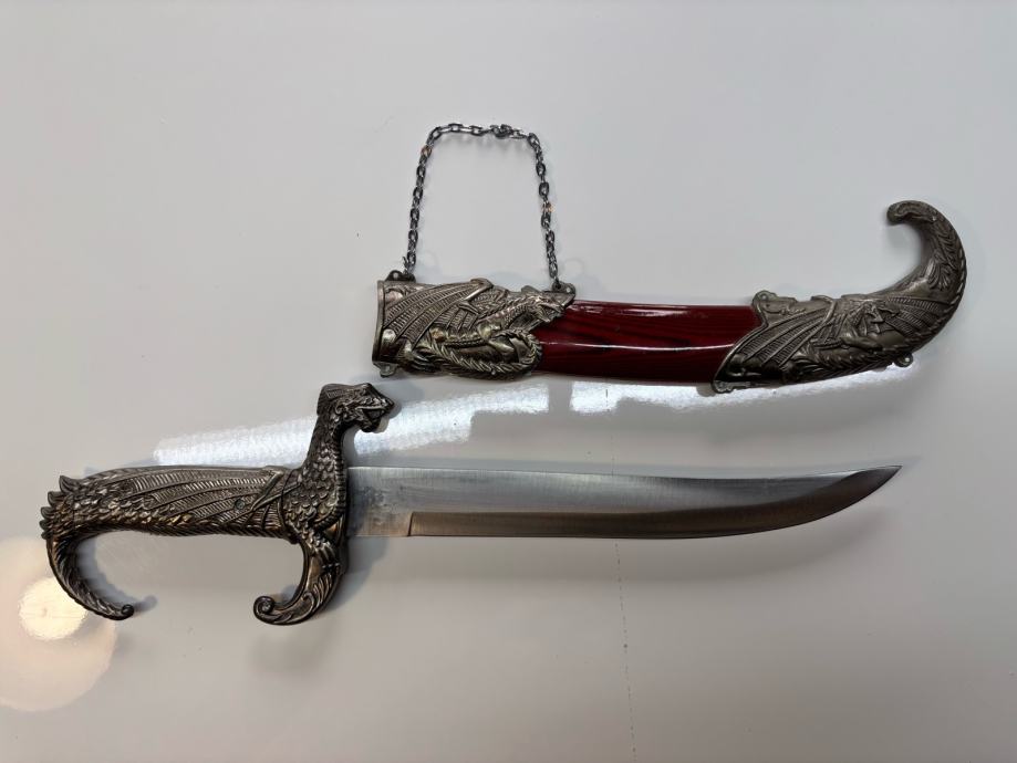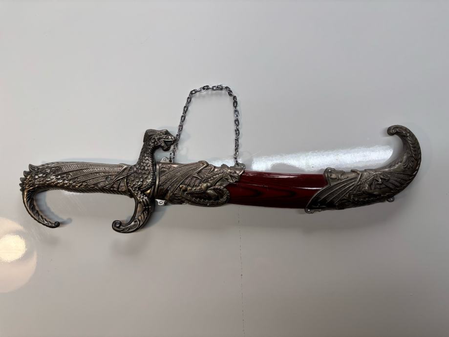 Prodajem bodež s ukrasima zmajeva dužine 35 cm, oštrica 22 cm. Novo