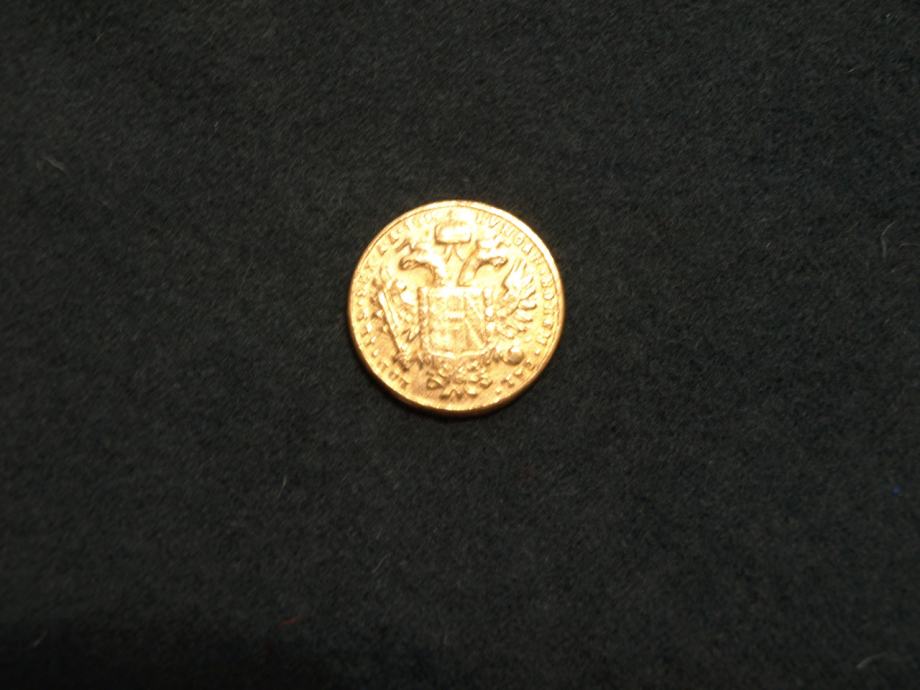 Na reversu zlatnika otisnut je lik cara Franje Josipa (Franz Jozef) u svečanoj imperatorskoj odjeći i tekst FRANC IOS I D G AVSTRIAE IMPERATOR. Na obversu se nalazi grb Austro-Ugarske monarhije, te dvoglavi austrijski carski orao, s tekstom HUNGAR BOHEM GAL LOD ILL REX A A 1915.