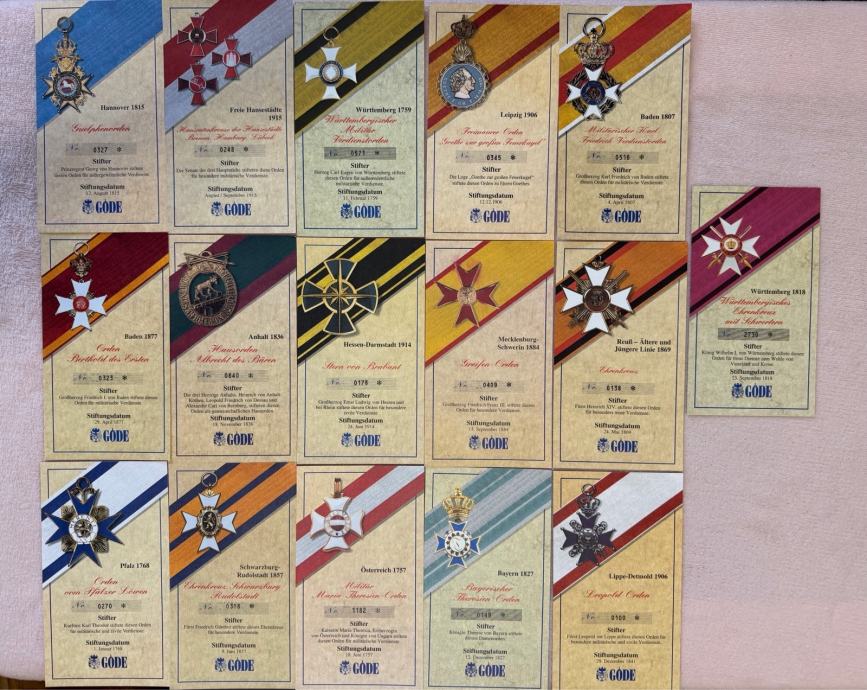 Prodajem kolekcionarsku seriju povijesnih europskih ordena proizvođača GÖDE.