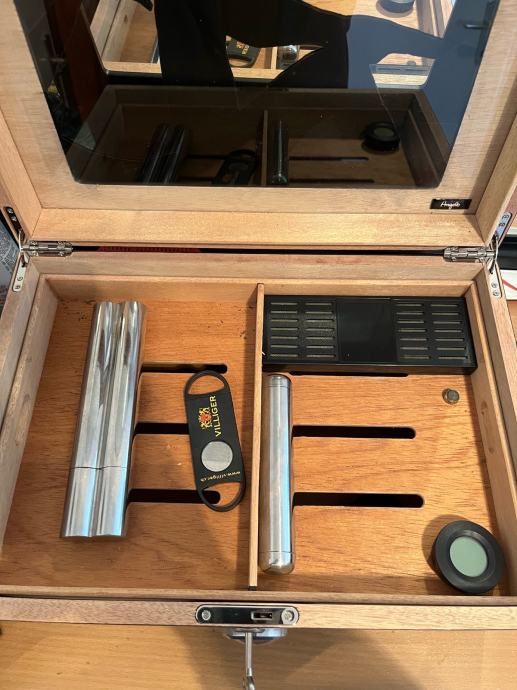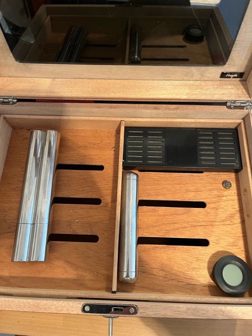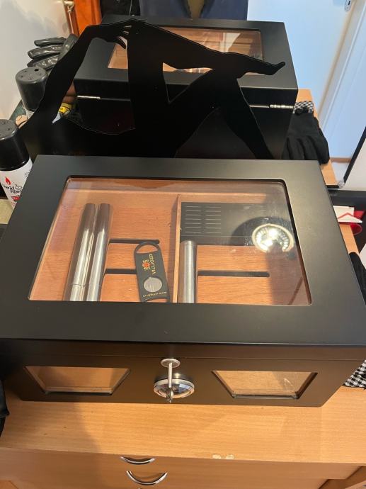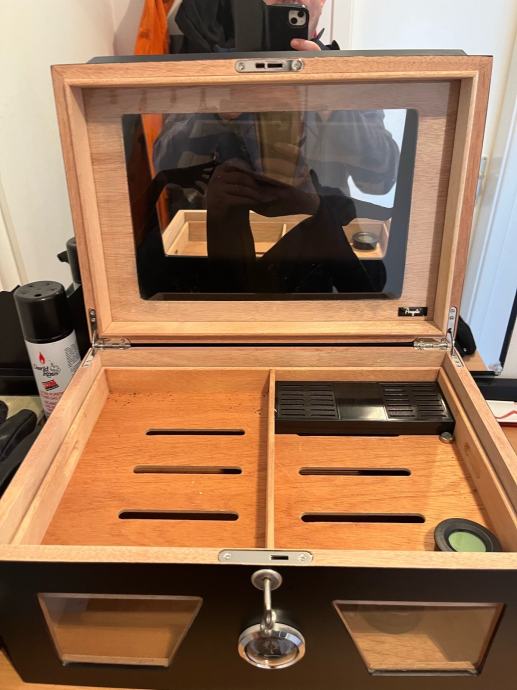 Humidor je uredno održavan i spreman za korištenje. Idealan za čuvanje cigara na optimalnoj vlazi.