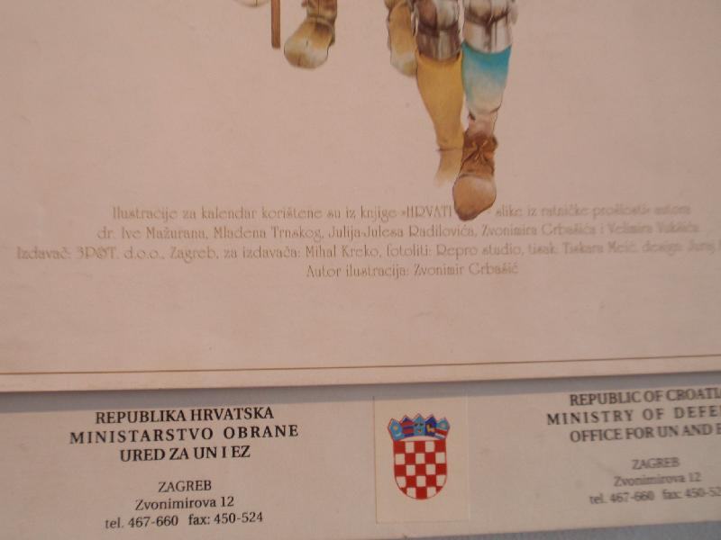 Kalendar HRVATSKI RATNICI KROZ STOLJEĆA, izdanje MORH, ured za EU i EZ iz 1994. godine.