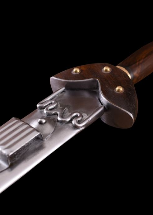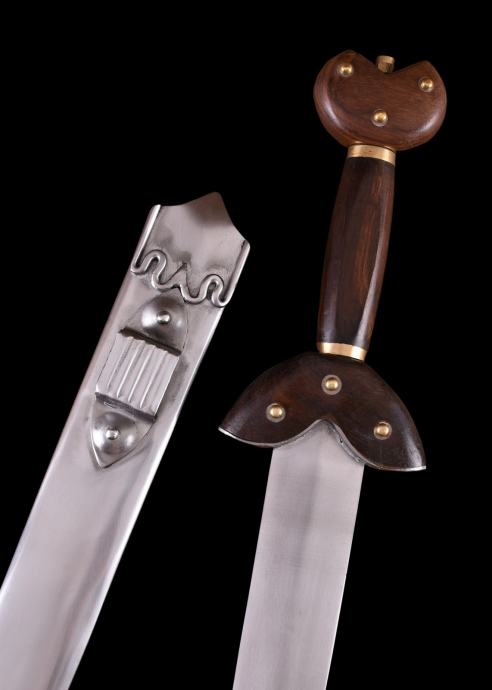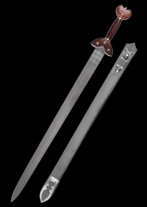Našu repliku možete nositi o pojasu u metalnim koricama. Drška je izrađena od drveta, a oblik štitnika tipičan je za ovo vrijeme.