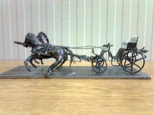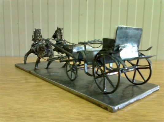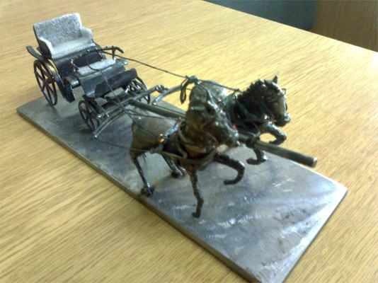 konji i kočija, 100% autentično, ručni rad (napravljeno zavarivanjem wig-om, argon, poznavatelji znaju što je to) dužina oko 300mm