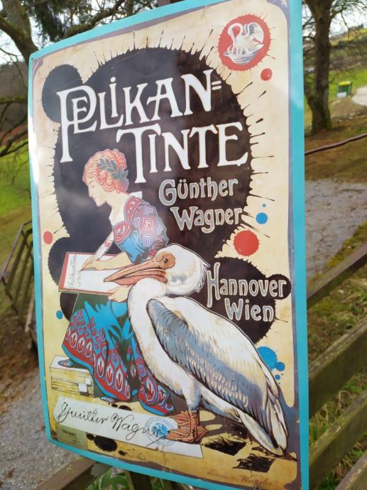 Njemačka reljefna limena reklama u Art Novuea stilu za PELIKAN TINTA..