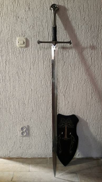 Prodajem repliku Aragornova mača Andúril iz Gospodara prstenova. Duljina mača je otprilike 134, a oštrice 104 cm.