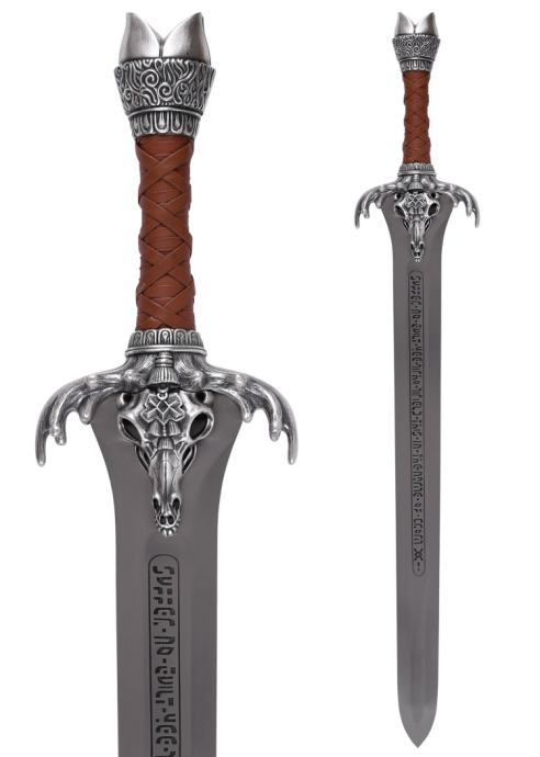 Od Conana The Barbarian, filma o potrazi mladog barbara da osveti smrt svojih roditelja. Originalna replika jednog od najpoznatijih filmskih mačeva koje je iskovao Conanov otac u filmu Conan the Barbarian. Drška je presvučena pletenom kožom i ukrašena je, kao i oštrica, simbolima cimeriosa. Metalni križ predstavlja lubanju irskog losa, a drška reproducira njegova spojena kopita. Posebna čelična oštrica temperirana u Toledu s dubokim graviranjem s originalnim runama posvećenim Crom Bogu od čelika.