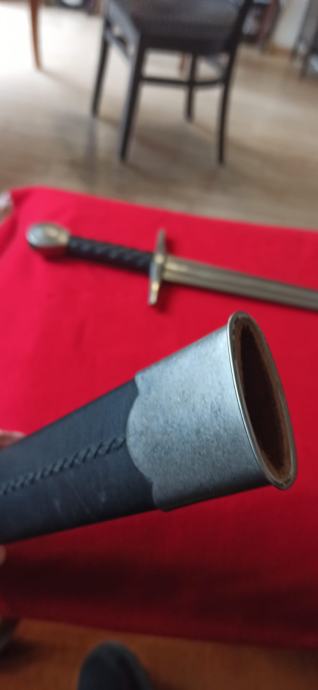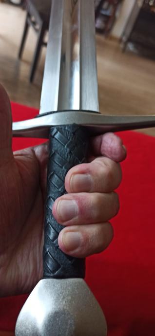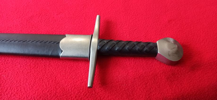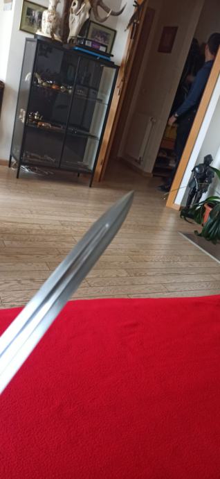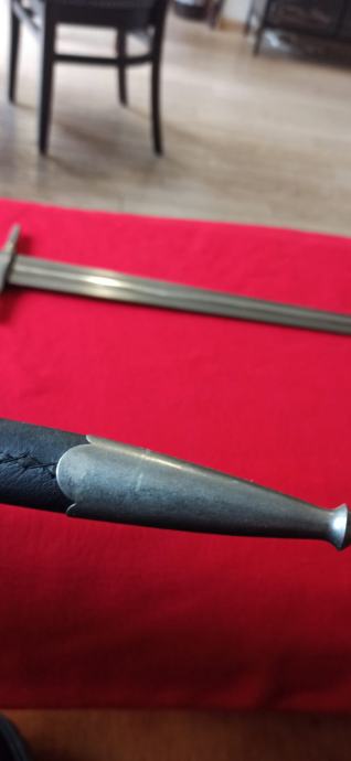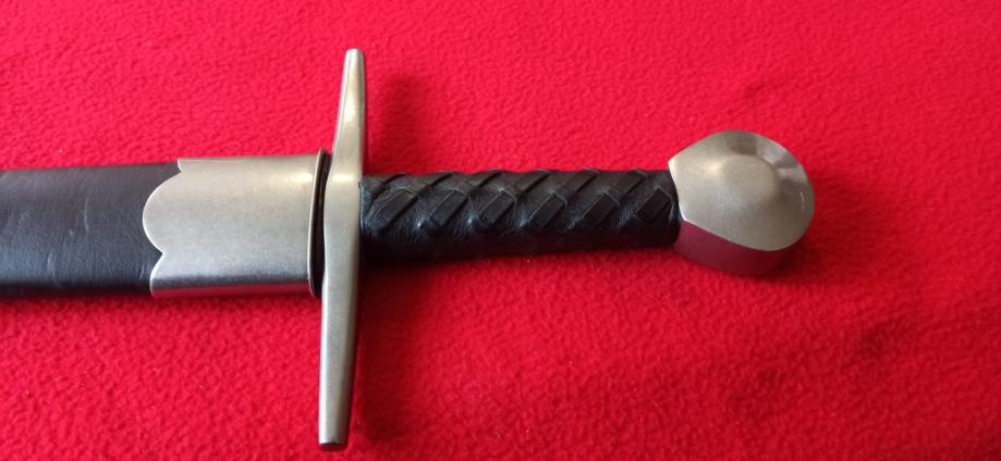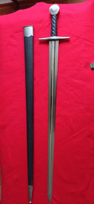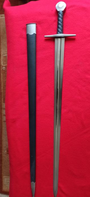 Vrhunska funkcionalna replika srednjovjekovnog mača korištenog stoljećima. Dužina sječiva84 cm, ukupna dužina 101 cm, širina sječiva na najširem dijelu 5 cm. Sječivo kovano, karbonsko, vrlo oštro brušeno, križnica željezna, drška opletena kožom, jabuka na kraju kovački zanitana. Korice drvene, obložene kožom, šivene, okov na početku i kraju, željezni. Prekrasan komad, opasno hladno oružje. Ne prodaje se mlađima od 18 godina.
