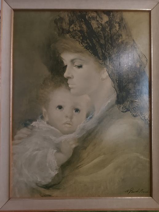 Prodajem print na šperploči majka i dijete, dimenzije po visini s okvirom 66cm, po dužini 50cm. Lijepo očuvano. Plačanje na račun ili gotovina.