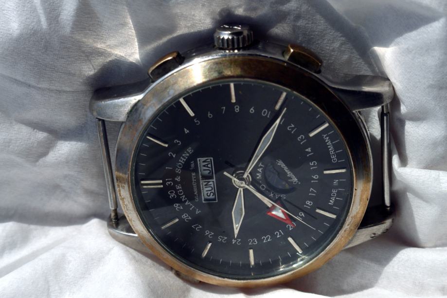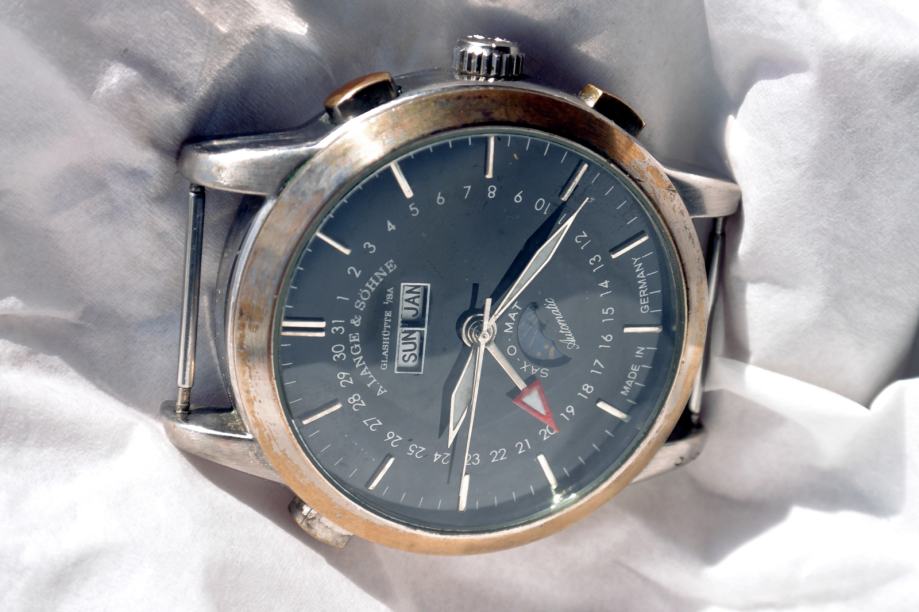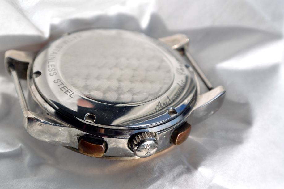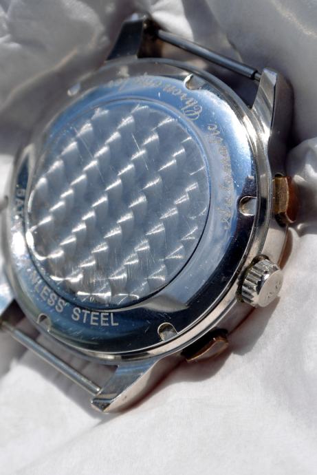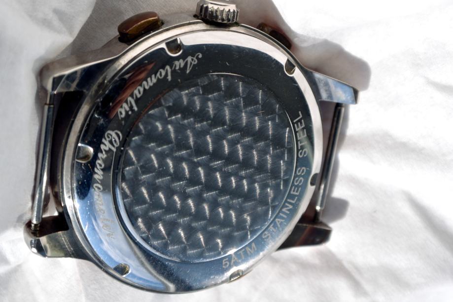 Radi. Samo gumb za danove v tjednu ne radi. Interesantno uprkos, da je unutra kineski avtomatski kalibar. Konkavno mineralno staklo. Dimenzije: 42mm (bez krune), sa lugs: 48mm, debelina: 15mm.