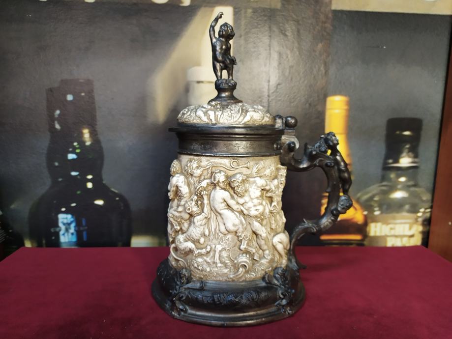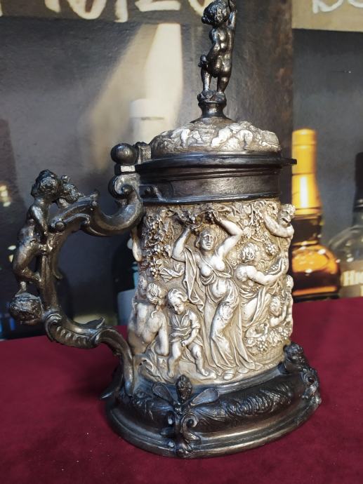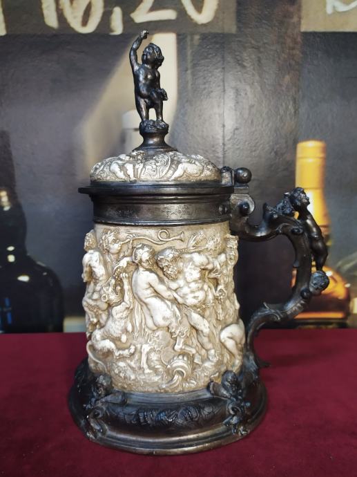 Vrhunska muzejska replika Njemačke krigle iz 1700/1800tih godina ..koje su u orginalu bile od srebra i rezbarene slonovače..
