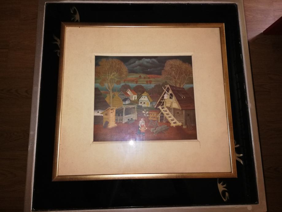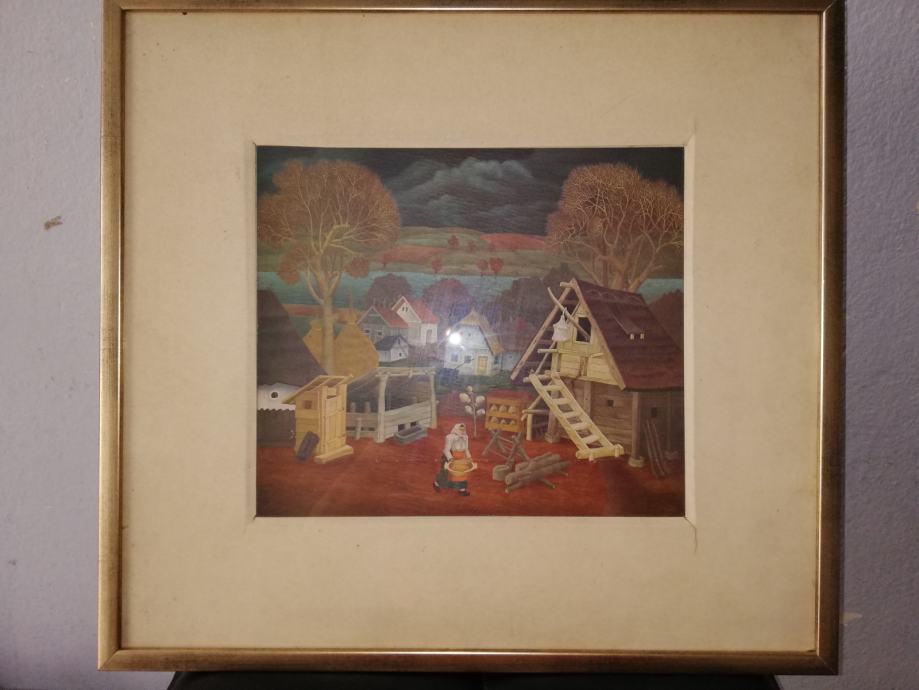 Seosko dvorište, motiv iz 1943.Reprodukcija. Oštećeno!