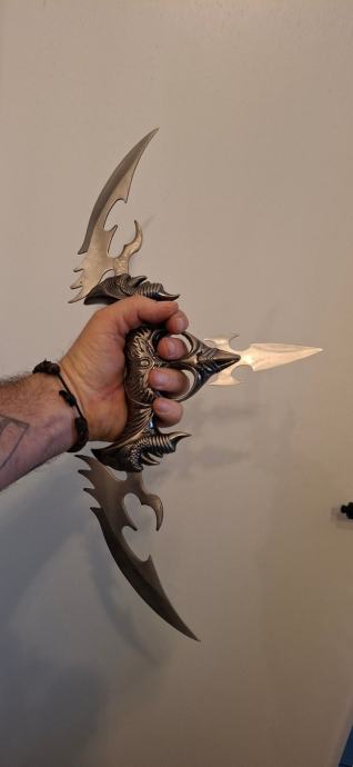 Nož sa tri oštrice (dvije sklopive), sa stalkom. Ukras za zid.