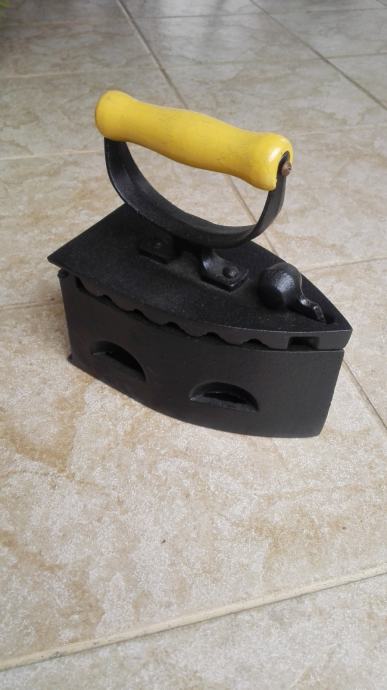Prodajem staru peglu na žar.Poklopac koji se diže na jednoj strani se ne drži za peglu ostalo je sve OK.