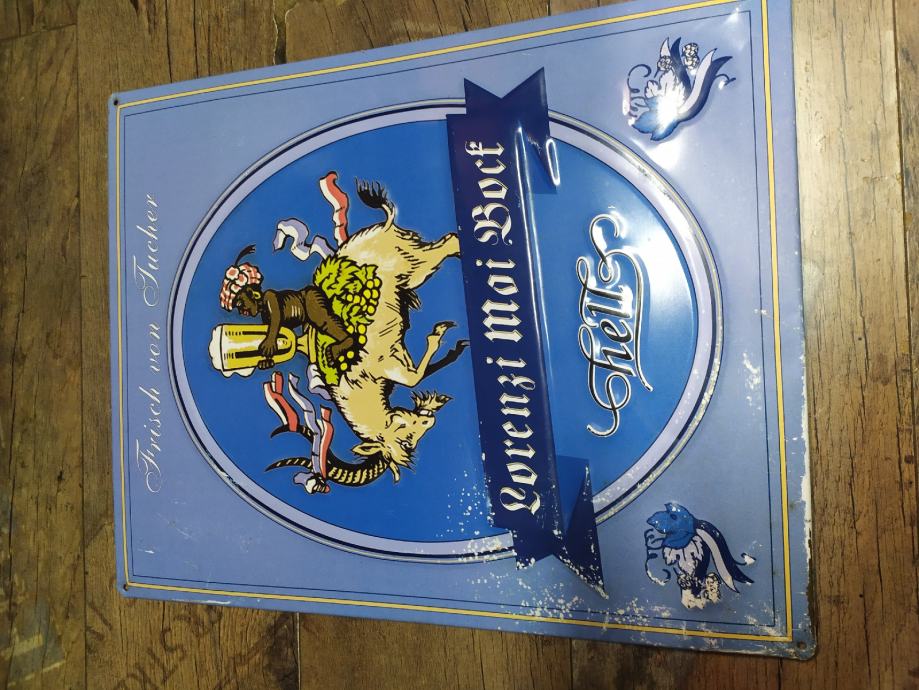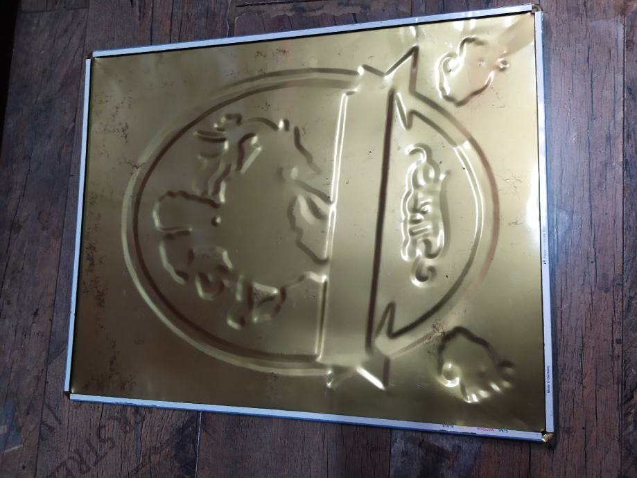 Retro limena reljefna reklama za pivo HELL..