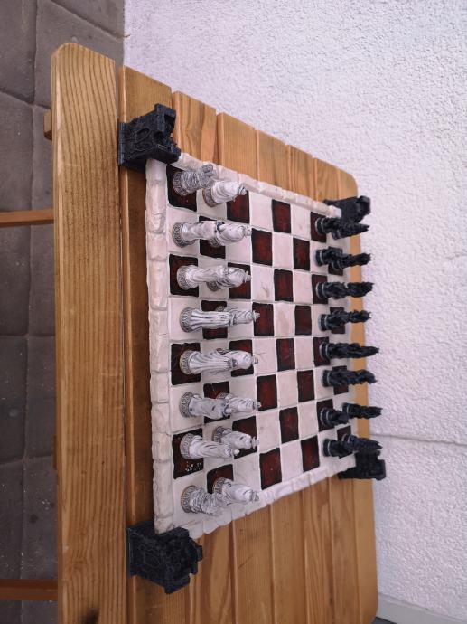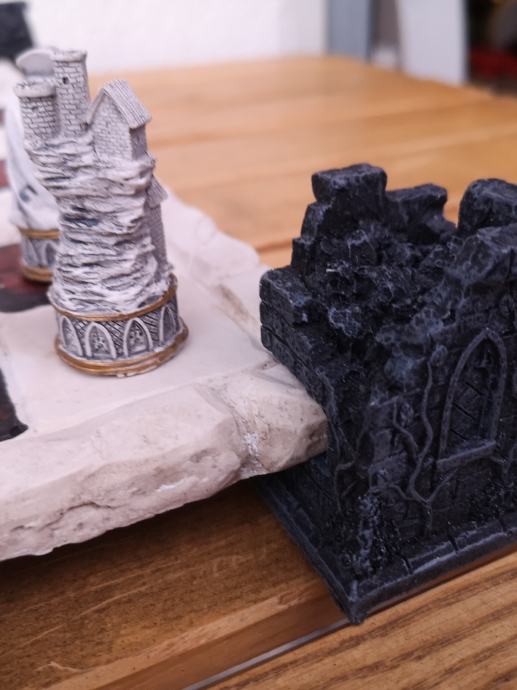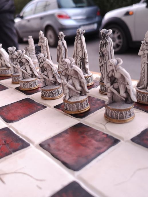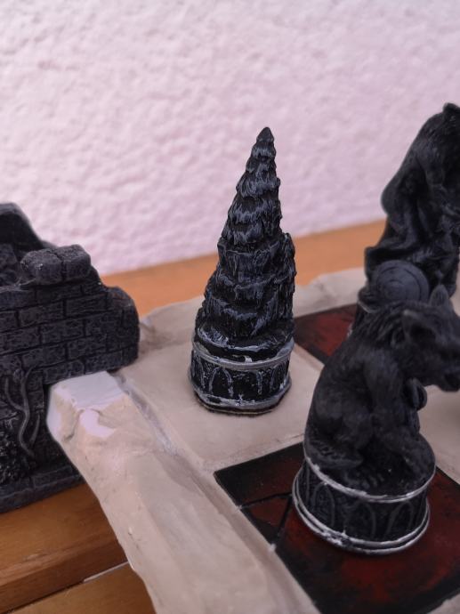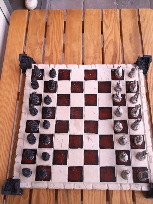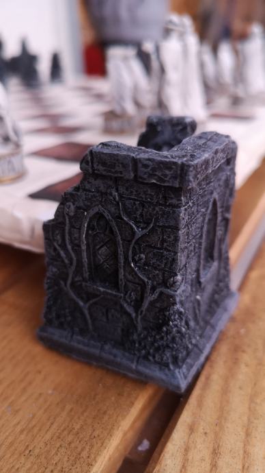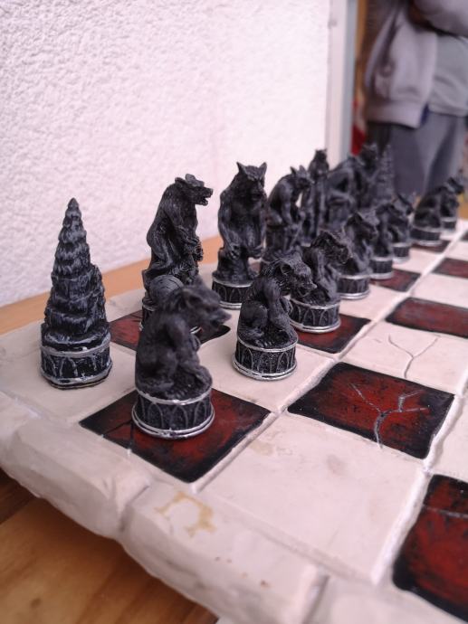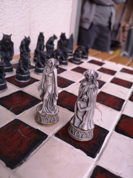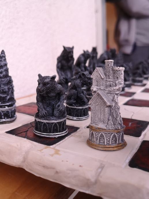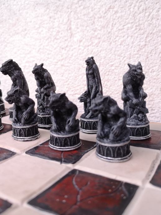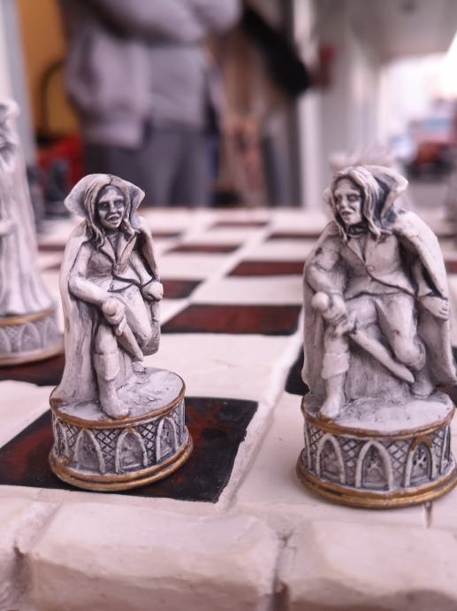 Šah, kamena ploča, figure vampiri i vukodlaci, kule kao držači ploče, fantasy. Dimenzije 42 x 42 cm. Ne šaljem pouzećem