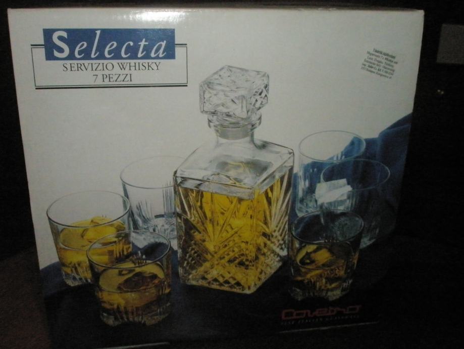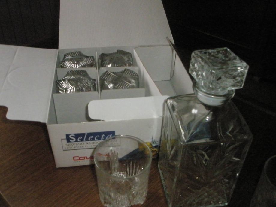 Prodajem potpuno novi set čaša za viski (6 čaša i jedna flaša sa čepom), čaša je široka 8 cm. a visoka 9 cm., flaša je visoka 25 cm. i široka 10 cm.Cijena je 150 kuna.
