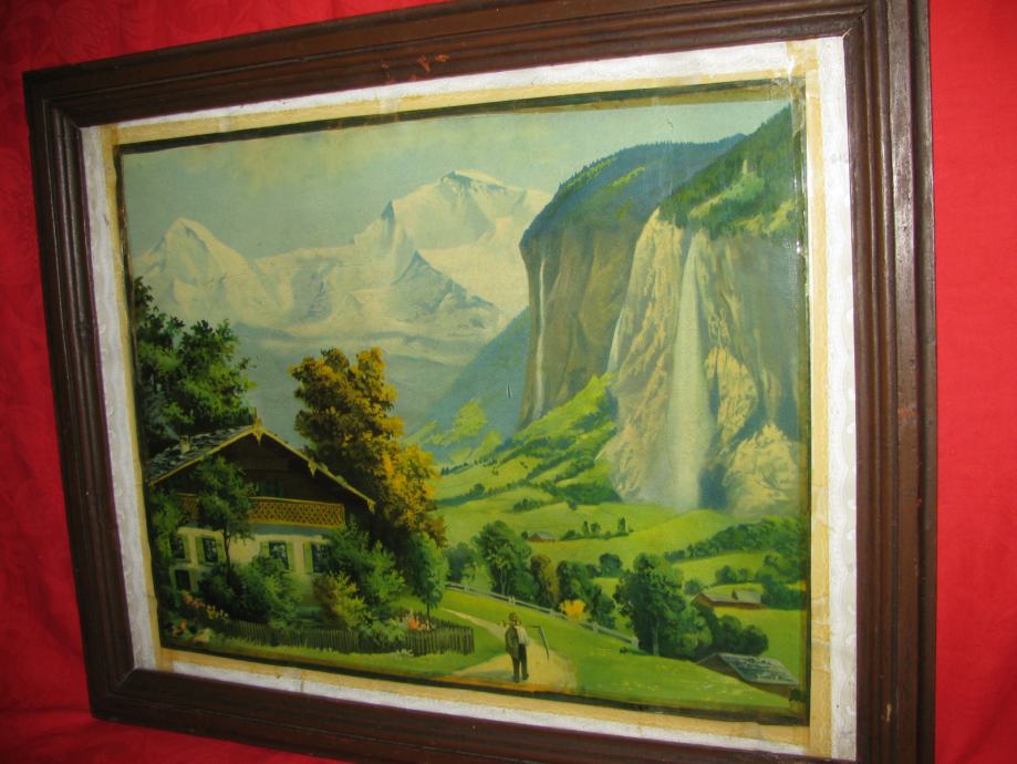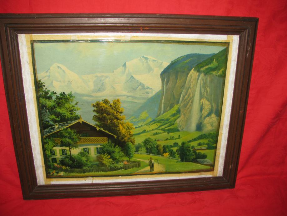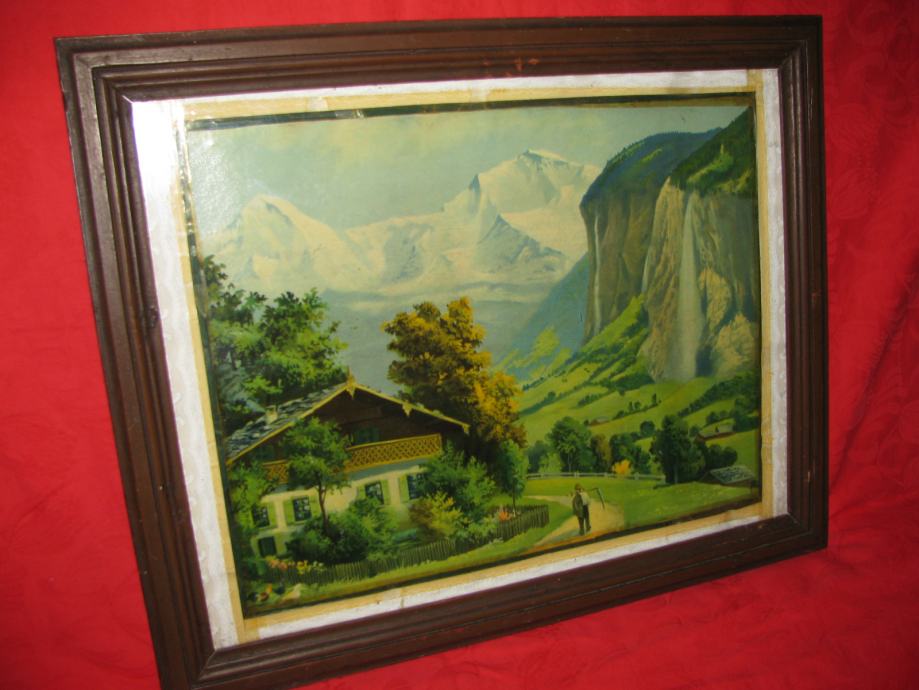 Ostakljena stara reprodukcija u starom drvenom okviru.