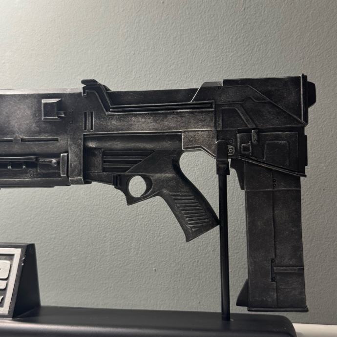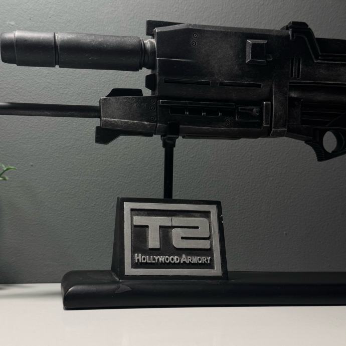 Replika puške iz filma Terminator 2 Judgement Day u omjeru 1:2 proizvođača Hollywood Collectibles Group iz 2008. godine.