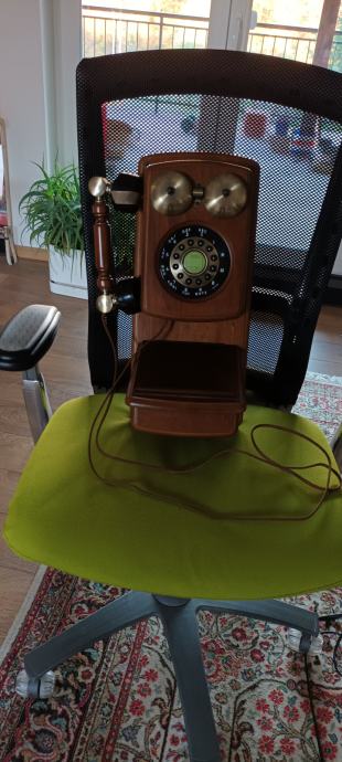 Telefon je zidni u retro stilu. Tipke za biranje.
