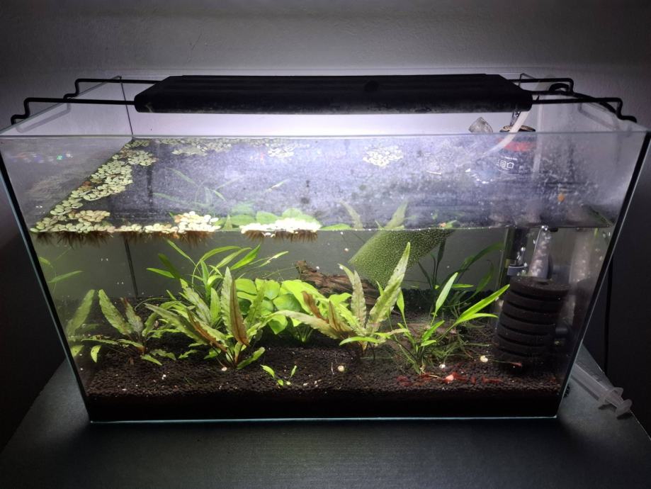 30l, svjetlo, dva spuzva filtera, panjevi, bilje, svjetlo s timerom, zračna pumpa za filtere. Uhodan i nezahtjevan akvarij