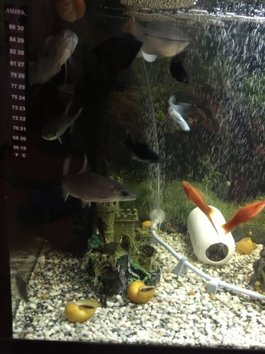 U velikom imaju koridorasi,sharkovi,trikogasteri,frenatusi,moliji,dragonfish,svertovi,ancitrusi oko 30 komada i 10 odraslih puzeva jabucara i oko 100 mladih puzeva velicine 5 mm