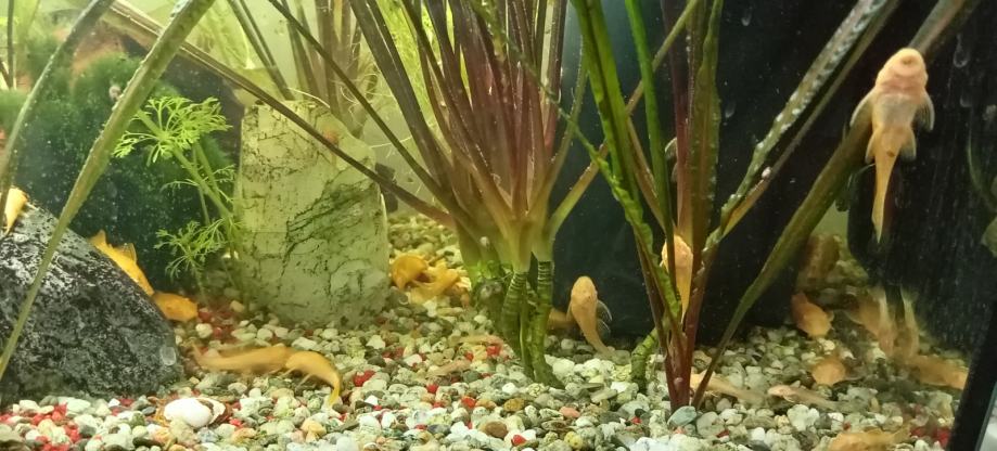 Albino mladi ancistrusi. Već oko 10 generacija nasljedstva od istih roditelja i preko 50 ancistrusa je pronaslo novi dom. Cijena simbolika 2 euro komad, ima manjih, srednjih i već odraslih.