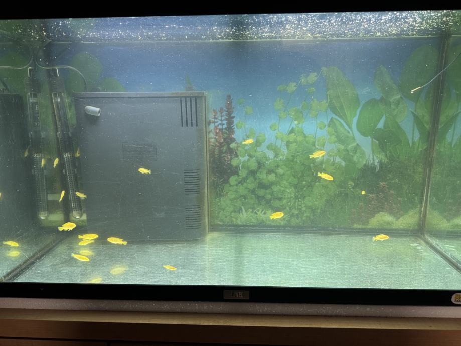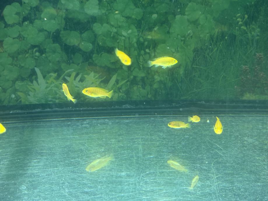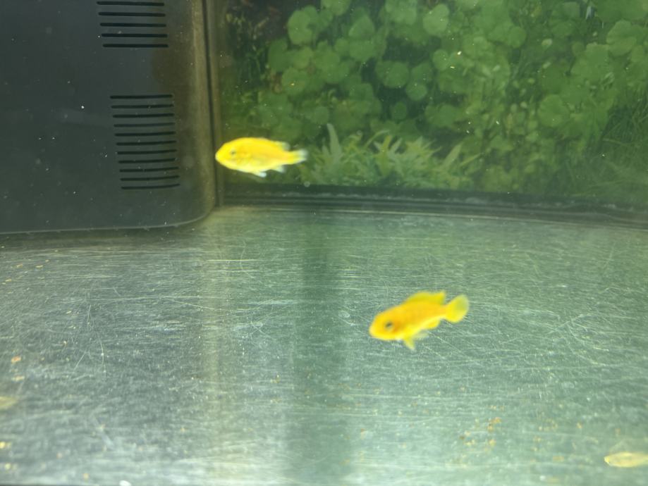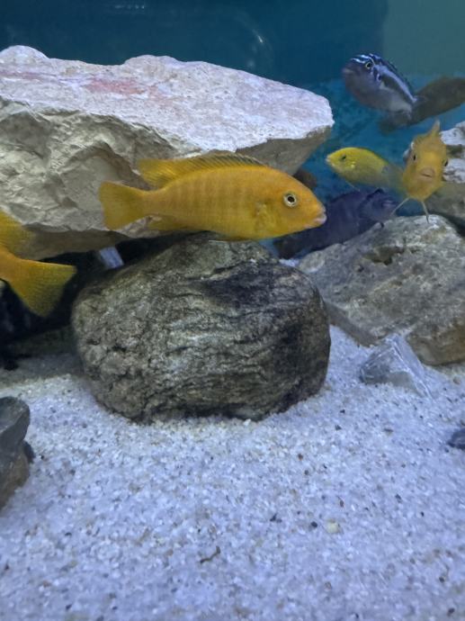 Malawi ciklidi Saluosi na prodaju.Na slici mužijak,ženka i malci.Mužijaci bi uskoro trebali mijenjati boju.cijena za komad 3,00 eura.