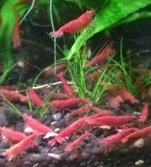 Prodajem višak akvarijskih crvenih kozica, uz hranu za kozice pojedu i nepojedenu hranu od ribica, alge (ne sve vrste kao što su npr. končaste i čupave) te uginule ribice u akvariju (samim tim održavaju kvalitetu vode).