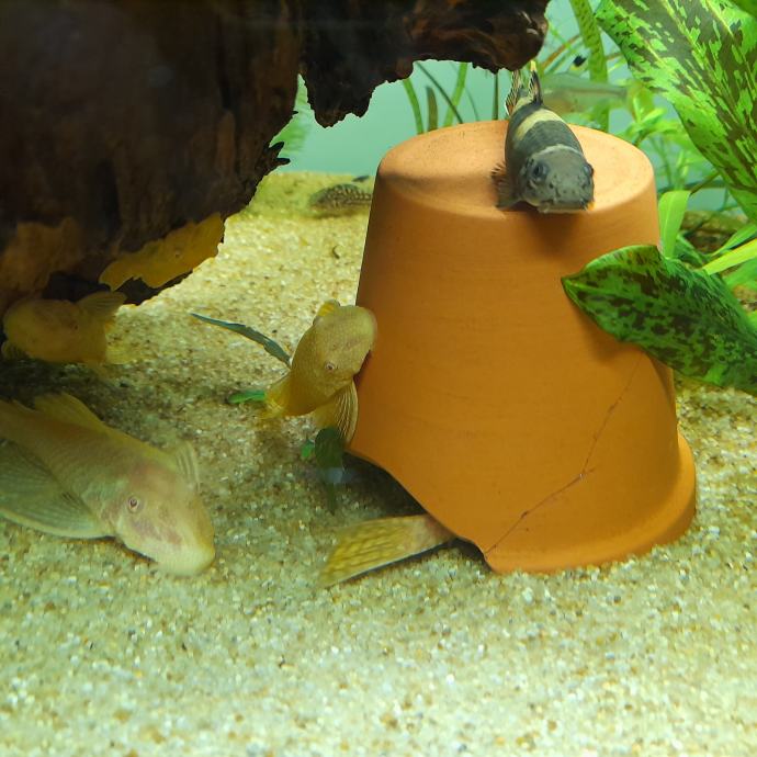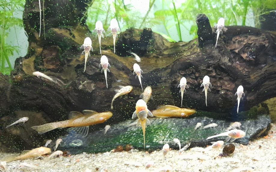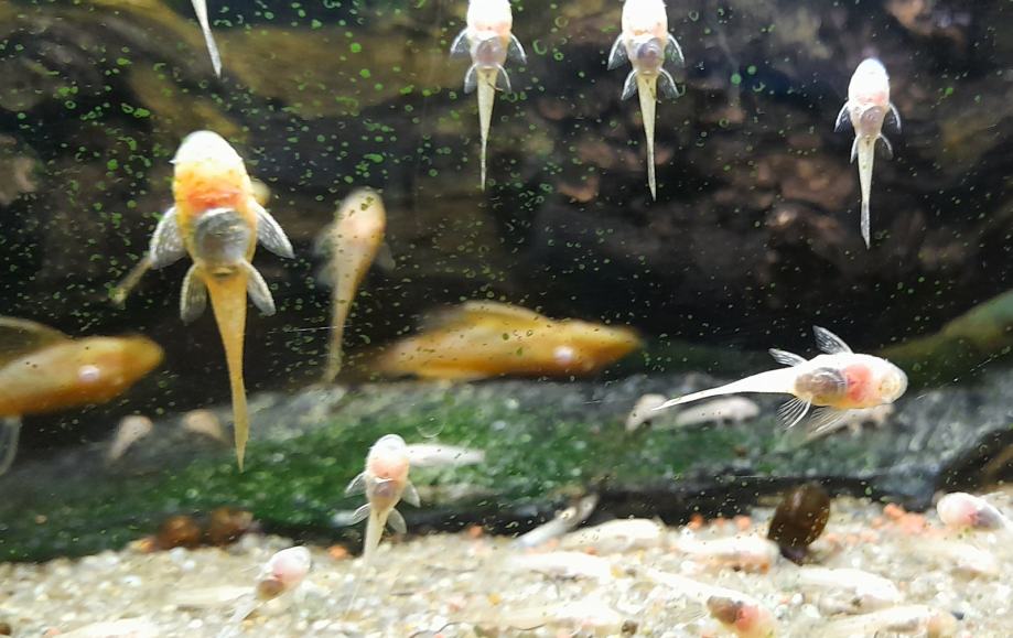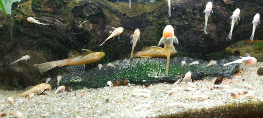 Do tih promjena je vjerojatno nastalo zbog činjenice da su svima predci prve tri ribice. Moram priznati da je zgodno vidjeti male odrasle ancistruse. Sviđaju se i ljudima koji inače ne vole izgled ancistrusa normalne veličine.