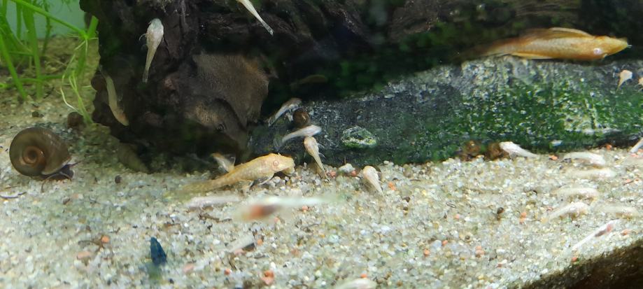Osim toga u nasljeđivanju su nestali crni ancistrusi i danas imam samo albino ancistruse. Zato sam počeo kontrolirati razmnožavanje i samo povremeno dopuštam mrijest. Dana 06.02.2025. sam dobio zadnji mrijest (slika 8).