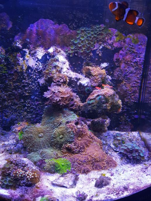 - U akvariju se nalazi pijesak, živi kamen, razni živi koralji, jedna ribica Nemo (klaun)