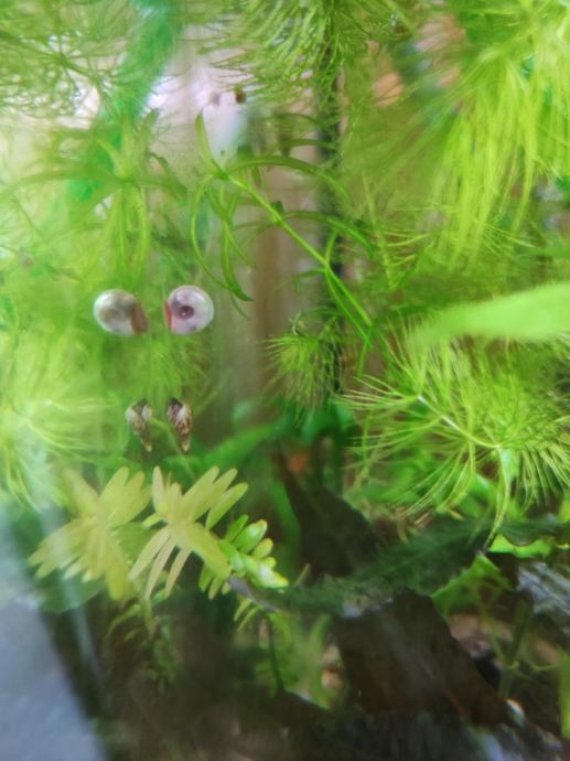 Ramshorn puževi jedu alge i tako su dobri čistači vašeg akvarija, ne štete nikome u akvariju.