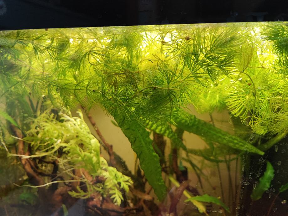 Veliki, lijepi i zdravi rogolist,samo ga stavite u akvarij i on pluta na površini ( biljci ne raste korijen). Ujedno zasjenjuje te tako spriječava nastanak algi, postavite ga da pluta na mjesto koje vam je problematično u svezi sa algama. Postepeno ćete riješiti problem.