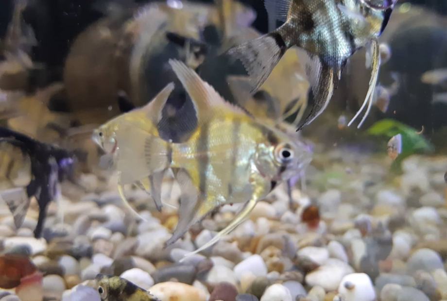 Prodajem mlade skalare stare oko 4 mjeseca hranjene visokokvalitetnom hranom kao i sa živom artemiom, trenutna veličina 5-7cm