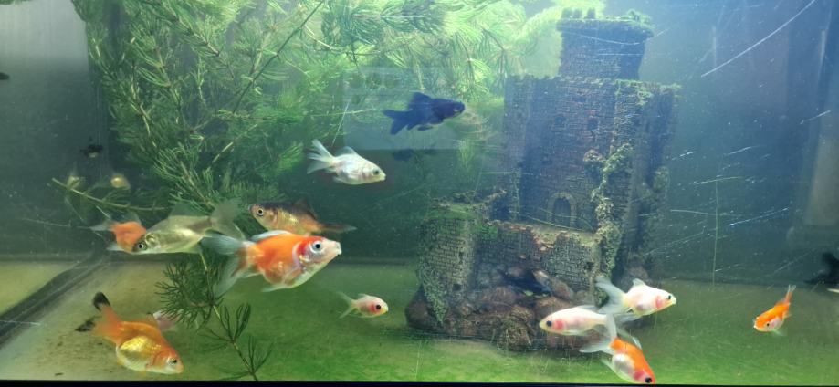 Mažene i pažene. Othranjene živom artemiom, kasnije spirulinom, smrznutim crvenim crvima, artemiom, dafniom i granulama, kuhanim povrćem.