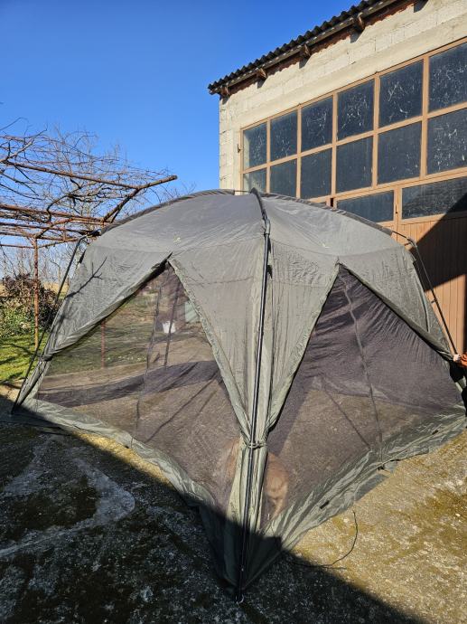 Šator je ogroman 3.3x3.3x2,2m iste dimenzije kao i Gazebo. Može se otvarati sa sve 4 strane i može se koristiti samo sa komarnicima što je top za ljetne vrućine,a opet pecao sam i u kasnu jesenu njemu bez poteškoća. Idealan za tekme,druženja i druge prigode.