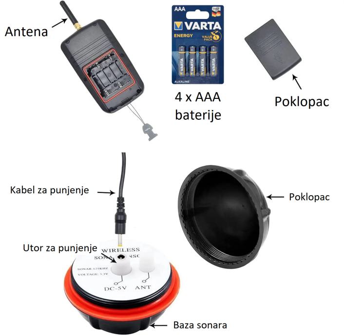 - sonar na dnu ima dvije metalne igle zbog kojih radi samo kad je u vodi, izbjegavajte rukama dirati te igle jer može doći do kvara