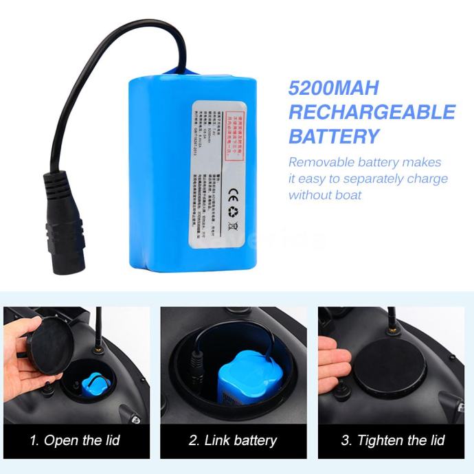 Čamac za mamac napaja punjiva baterija od 5200 mAh.